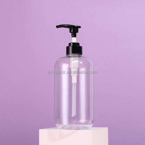 ขายส่งบอสตันรอบขวด PET สีขาว300/400/500/600มิลลิลิตรผมขวดน้ำมันสำหรับร่างกายสบู่